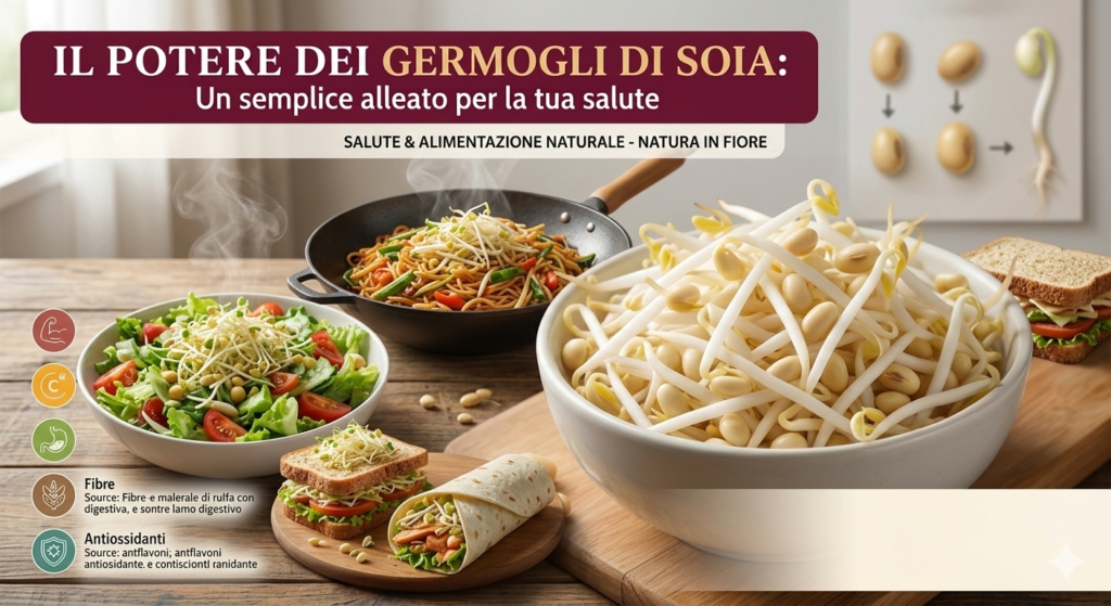 I germogli di soia sono un alimento semplice ma estremamente ricco di proprietà nutrizionali. Nascono dal processo di germinazione dei semi di soia, durante il quale il seme sviluppa piccoli germogli bianchi, teneri e croccanti, molto utilizzati nella cucina asiatica ma sempre più presenti anche nella dieta mediterranea. Grazie al loro basso contenuto calorico e […]